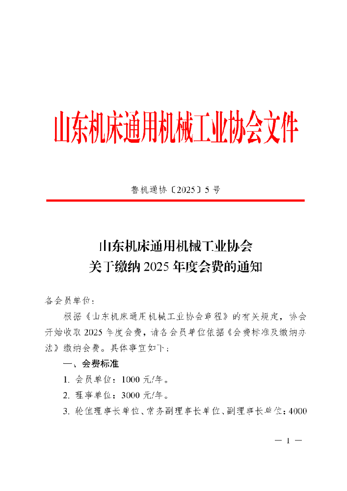 鲁机通协〔2025〕5号 关于缴纳2025年度会费的通知.p···…